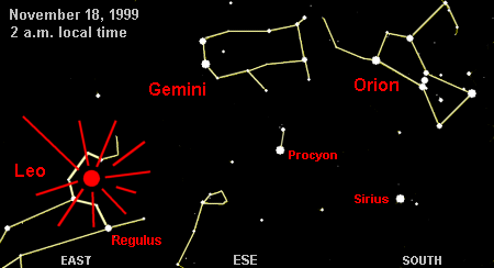 Kako posmatrati meteore Uvodna napomena: tekst je opsteg karaktera, i primenjiv je za posmatranje bilo kog meteorskog roja tokom godine, ali je povod predstojeci meteorski roj Leonida, na koji je u tekstu stavljen akcenat. Spremite se da propustite dosta spavanja u noci izmedju 17. i 18. novembra.. Mozete dremnuti do 11 uvece, najkasnije do ponoci, a posle toga …ustajanje… To je vreme kada se radijant meteorskog potoka Leonida pojavljuje na horizontu (istok-severoistok). Pre toga nece se nista videti, makar i da ovaj meteorski potok napravi "rusvaj" negde sa druge strane globusa. Radijant cete pronaci prema ovoj karti:
