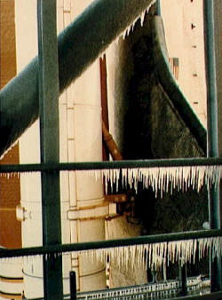 Primarnu komponentu ansambla čini orbiter, višekratna letilica sa krilima, koja posadu i teret nosi u kosmos i vraća ih na zemlju sletanjem na pistu. Međutim, sâm orbiter nije u stanju da proizvede dovoljno potiska niti može da ponese dovoljno goriva da bi stigao u orbitu. Potrebni potisak se postiže upotrebom dva velika bustera na čvrsto gorivo (SRB) koja su pomoću snažnih nosača okačena sa strana spoljnjeg rezervoara (ET). Ovi moćni raketni motori sastoje se od nekoliko segmenata i u sebi nose čvrsto gorivo okruženo lakom metalnom oblogom. Segmenti svakog bustera u se fabrici spajaju u tri velike celine, koje su posebno dopremaju na Floridu, u objekat za montažu u Kenedijevom svemirskom centru, Vehicle Assembly Building [2]. Tu se tokom sastavljanja letilice spajaju i ti segmenti, a prostor između njih se popunjava sa dva velika okrugla gumena prstena ("dihtunga", ili zaptivke). Usled toplote koju razvija sagorevanje goriva u busterima, ti gumeni dihtunzi se šire i popunjavaju praznine u sastavima, sprečavaju time da vrele gasovi izlaze napolje. Dva SRB stvaraju većinu potiska (preko 70%) koji je potreban da šatl stigne u orbitu. Mada su raketni motori na čvrsto gorivo manje komplikovane i jeftinije od onih na tečno gorivo, koje koristi i orbiter, njihova najgora osobina je to što ne mogu da se isključe. Kada jednom startuju, SRB nastavljaju da sagorevaju punom snagom sve dok imaju goriva. Nakon što obave svoj posao i podignu šatl na visinu od oko 45,5 kilometara, SRB se uz pomoć malih eksplozivnih punjenja otkačinju od ansambla, i uz pomoć padobrana spuštaju u okean. Tamo ih čekaju remorkeri, koji ih vuku na obalu gde će biti oprani i servisirani, i pripremljeni za sledeći let. Funkcija spoljnjeg rezervoara, sledećeg dela STS po veličini, jeste da nosi tečno gorivo potrebno za tri glavna motora (SSME) koja se nalaze u repu svakog orbitera. Zajedno sa SRB, ta tri motora na tečno gorivo daju dovoljan potisak za ulaženje u orbitu oko Zemlje. Tokom devet minuta rada, glavni motori troše ogromnu količinu goriva, koje nosi spoljnji tank. Njegove dve trećine je ispunjeno tečnim vodonikom (LH2), dok gornja trećina sadrži tečni kiseonik (LOX). To kriogeničko gorivo se uz pomoć cevi koje se kriju u komleksu lansirne rampe puni u ET nekoliko časova pre lansiranja. Tokom poletanja, tečno gorivo hrani tri glavna motora orbitera nekih 8 ½ minuta nakon startovanja. Nakon toga, kada šatl dosegne tačku koja se označava kao MECO (Main Engine Cutoff), svo gorivo u ET je potrošeno, i ogromni rezervoar se na visini od oko 111,5 km otkačinje. Budući da je to jedini deo STS koji se ne koristi višekratno, njegovih 26 tona [3] će izgoreti u atmosferi negde iznad Indijskog okeana (ili Tihog, ako se koristi tzv. direct-insertion lansirna trajektorija, koja se u poslednje vreme jedino i koristi). Niske temperature Ovo upoznavanje sa glavnim delovima sistema šatla omogućiće nam da vidimo šta je to pošlo naopako u inkriminisanoj misiji Čelendžera. Preovladavajuća teorija, koju je plasirala istraga nakon tragedije, kaže da ni primarni ni sekundarni kružni dihtung ("O–ring") nisu propisno zaptivali prostor poznat pod nazivom "aft field joint" na desnom SRB. Spoj se nalazio u blizini donjeg spoja SRB sa spoljnjim rezervoarom. Loše obavljen posao dihtunga dozvolio je nekontrolisano oslobađanje vrelih ispusnih gasova (3.315° C) iz unutrašnjih komora raketnog motora, i otpočinjanje nezaustavljivog kataklizmičnog sleda događaja. Većina izvora navodi da je noć pred lansiranje temperatura vazduha u Kejp Kenediju pala na –8° C, a da je ujutro pred odbrojavanje bila svega 2° C. Nijedan prethodni let šatlova nikada nije izveden pri temperaturi nižoj od 11° C, a proizvođač "Morton Thiokol" nije imao dovoljno podataka kako će se njihovi busteri ponašati na tako niskim temperaturama. Iako su inženjeri iz "Thiokola" bili skeptični u vezi lansiranja u tim uslovima i predlagali odlaganje, mnogi drugi su smatrali da busteri mogu sigurno da funkcionišu i pri tako niskoj temperaturi. Međutim, to pojednostavljeno objašnjenje krije brojne faktore čija kombinacija će dovesti do nefunkcionisanja zaptivki i tragičnog gubitka letilice i ljudi. Prvi od tih faktora je jak vetar koji je šibao lansirnom rampom noć i jutro pred lansiranje Čelendžera. Vetar nije poštedeo ni ET, koji je već bio napunjen sa tonama tečnog vodonika (–253° C) i tečnog kiseonika (–184° C), uzrokujući da vazduh postane superohlađen i počne da pada ka zemlji iza ET. Taj fenomen je zabeležen na nekim fotografijama servisnog tornja u noći uoči lansiranja. Jedna mala česma za osvežavanje bila je ostavljena preko noći uključena, ali se usled ledenog vetra njen mlaz zaledio u pravcu toka spuštajućeg vazduha. I pored toga, sve to nije toliko neuobičajeno. Vetar je znao da stvori ledenu koru na ET i lansirnoj rampi čak i pri višim temperaturama. Ono što je bilo neuobičajeno u ovom slučaju, međutim, bilo je to da je vetar duvao sa zapada–severozapada. Kao rezultat, superhladni vazduh se spuštao pravo unutar donjeg dela desnog SRB i udarao odozgo na donji spoj. Na slici je prikazan pravac vetra odozgo na dole u odnosu na ansambl šatla.