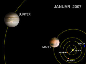 HiRISE kamera na MRO (Mars Reconnaissance Orbiter) letelici, koja od marta 2006. godine kruži oko crvene planete, je najmoćniji teleskop koji je ikada napustio Zemljinu orbitu. Sredinom januara astronomi su uperili kameru ka Jupiteru i načinili izuzetan snimak. Mnoštvo detalja vidljivo je u atmosferi planete a uslikana su i sva četiri velika satelita.