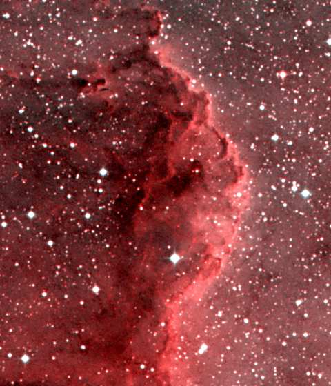 Ovde vidite gust stub gasa i prašine (lociran na RA=21h00m30s Dec=+43°52') u maglini Severna Amerika. Ovi ogromni stubovi gasa uobičajena su pojava u mnogim maglinama a materijal unutar njih često ima toliku gustinu da dolazi do kolapsa i formiranja zvezda. Ovaj stub gasa dug je 7 svetlosnih godina, i unutar njega može da stane 10ął milijardi planeta veličine Zemlje.