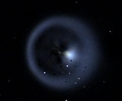 Drugačija obrada snimke Holmesa - program Iris, "rotational gradient" od 20 stupnjeva - naglašava se krupnija struktura unutar komete.