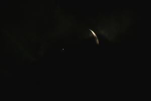 1. Decembar i nije neki datum od koga bi moglo da se očekuje baš previše u meteorološkom smislu, ali šta ćeš, nebeska mehanika je podesila da se baš na taj datum spetljaju Venera i Mesec. Ne očekujući mnogo, postavili smo našu novu opremu da se temperaturno adaptira na terasi. Nova lepotica od montaže "Losmandy" GM8 zadovoljno, bez naprezanja i nečujno je na svojim leđima nosila novi "Orion UK" photo Newtonian od 150 mm na f/4. Tu se udobno smestio i stari dobri MTO 100/1000 mm, nek se nađe... "Canon" 350D da i ne pominjem, bez njega ne znam kako bi živeli. Kakav prelep setup!! Šarene se oblaci, ima prozora sa vedrinom ali baš tamo gde ne treba. Trudimo se da ostanemo cool, ali nije lako. Kako se Mesec i Venera sve više približavaju jedno drugom tako i dušmani-oblaci sve više nadiru. Uf... Uspeli smo da u već pomenutim procepima između oblaka "uhvatimo" po neki kadar za uspomenu. Ne zamerite što fotke nisu savršeno izoštrene, kadrirane, eksponirane i slično. Jednostavno nismo imali kada sve to da uradimo! Ovako na snimcima se i ne vidi dramatika i panika kratkotrajnih trenutaka vedrine kada treba uraditi sve, a vojska oblaka je očigledno brojno nadmoćnija. Poslednji snimak pod nazivom "Kraj za nas" je neposredno pred sam trenutak okultacije kada su oblaci definitivno odneli pobedu i 15-tak minuta posle toga počela je slaba kiša. Nadamo se da smo uspeli da na snimcima prenesemo deo atmosfere. Još jedna bitna stvar, Drago danas slavi rođendan pa nek mu je SREĆAN! Ja mu nisam doneo na poklon ništa, pa okultacija je baš danas a i delimično je vedro, a i videli smo i snimili ovaj prelep događaj, pa od Decembra se ne može očekivati više pa čak i kad ti je rođendan! Vedro nebo,