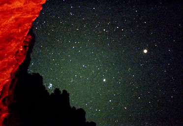 Fotografije su pre svega interesantne zbog toga što pokazuju šta se može snimiti kamerom na stativu bez praćenja, uz prilično dobro nebo (osim lokacije koja nije možda najbolja, važno je i doba godine – ovde mesec oktobar) i, naravno, naknadnom kompjuterskom obradom. Još jedna važna napomena: Mlečni put u Strelcu je snimljen vrlo blizu horizonta, znači u zoni vrlo loše vidljivosti, ali su uslovi bili ipak solidni. Na trećem snimku se iznad oblaka/izmaglice, vidi i trag aviona. (maj 2002.) |