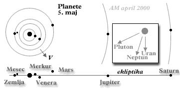 Petog maja ove godine sest velikih planeta i Mesec dospece u interesantan polozaj. Zemlja i Mesec sa jedne a Merkur, Venera, Mars, Jupiter i Saturn sa druge strane Sunca nacice se poravnati gotovo u jednoj liniji. Takav polozaj inace obicno budi mastu proroka propasti sveta ili slicnih ekoloskih katastrofa. Na zalost, iako je polozaj zanimljiv jer ce, posmatrano sa Zemlje, cak pet planeta istovremeno biti na nebu blizu jedna drugoj, nista necemo moci da vidimo zbog zasenjujuce svetlosti nase zvezde. Zapravo pravi osmatracki dogadja se odigrao pocetkom aprila, kada su se na nebu mogli videti Mesec, Mars, Jupiter i Saturn. [vidite foto zapis o tom dogadjaju]