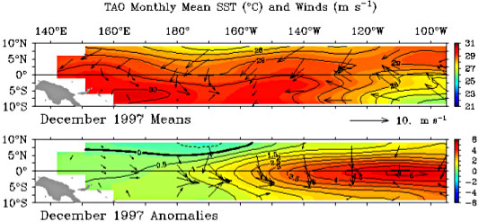 El Niño nastaje kada neuobičajeno tople struje pristižu u centralno i istočno područje ekvatorijalnog Pacifika. U normalnim okolnostima (slika br.3), zapadni Tihi ocean je za oko 8-10° C topliji nego ocean uz obale Perua ili Ekvadora koji je pod utjecajem hladne Humboldtove (Peruanske) struje. Pasati pušu s istoka na zapad preko Tihog oceana, s područja višeg subtropskog k područja ekvatorijalnog nižeg tlaka. Ovi vjetrovi pokreću ka zapadu topliju površinsku vodu zbog čega je nivo oceana na zapadnom Pacifiku za 50-60 cm viši, a temperatura vode na površini viša za oko 8°C. Na istočnim obalama se (usljed puhanja pasata i Humboldtove struje) dublja hladna voda uzdiže i zauzima mjesto toplije (upwelling). Ova voda je mnogo bogatija hranjivim tvarima i omogućuje intenzivnu primarnu produkciju u zoni istočne obale Pacifika koja je, stoga, bogata ribom. U zapadnom Pacifiku je toplo, atmosferski tlak je nizak i izražena je konvekcija, dok je u istočnom visok tlak, hladnije je i mnogo suše (npr. pustinja Atacama u Čileu, najsuša na svijetu, uzrokovana je hladnom Humboldtovom strujom koja donosi suh zrak i onemogućuje konvekciju i padaline). Međutim, svakih nekoliko godina, u vrlo nepravilnim razmacima, ova pojava zna biti mnogo jača, a zatopljenje ne prestaje cijele godine te dolazi do velikih poremećaja u široj pacifičkoj regiji, pa čak i u unutrašnjosti SAD i Europi. Još se pamti El Niño 1982./83. i najnoviji 1997. čije posljedice su iskusili i Europljani u vidu poplava i nevremena.